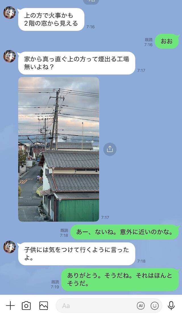 朝、消防車と救急車のサイレンの音が聞こえて。奥さんと「どこかで火事なのかな」などと話していた。 その話はまだ起き抜けの頃。その後子供たちとご飯を食べて身支度をして、事務所で朝ごはんを作っていると。 「2階の窓から、煙の上がってるのが見える」 と、奥さんからのLINE。確かに、相当くないところに、煙らしき...
