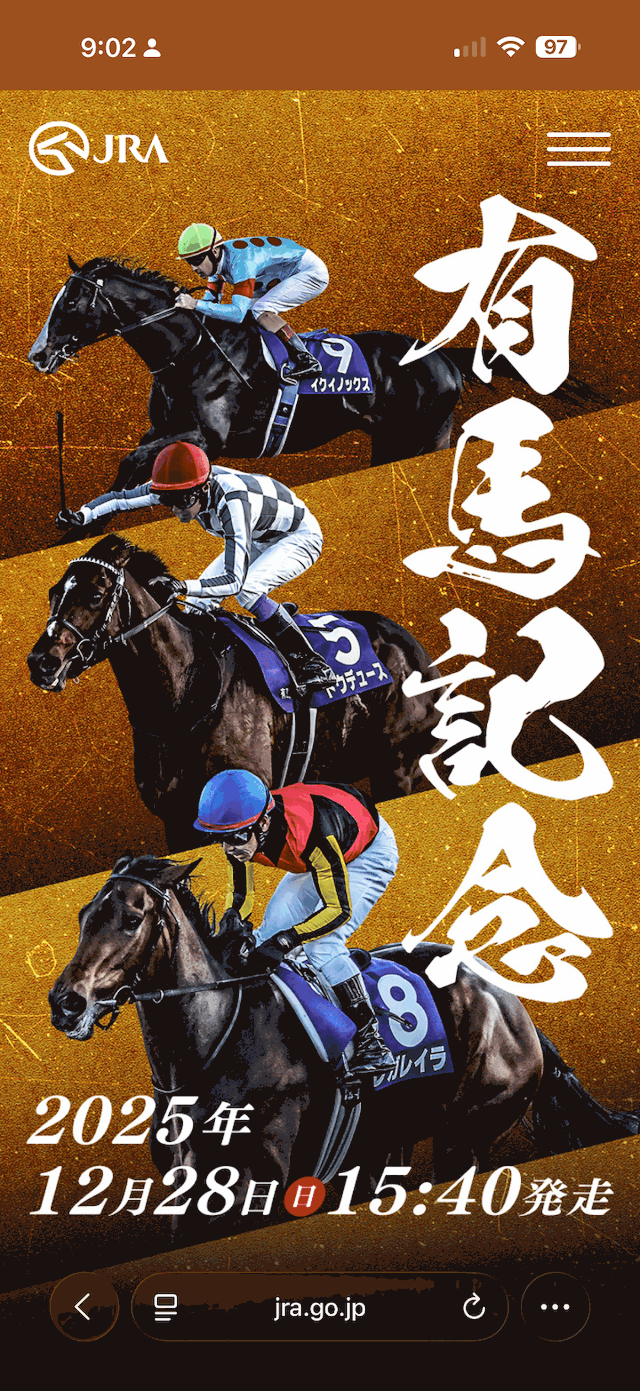 「競馬で百万円の配当を取るのが夢」 もう日記に何度も書いてきた言葉だ。今は取り立てて競馬の趣味は無い。 でも、昔はそこそこ競馬をやっていて。そしてその縁でいろんな方に励まされ、育ててもらった。 そのことを忘れないように。御恩返し、と言うわけでは無いけれど。今は有馬記念だけをやるようにしている。 本当...