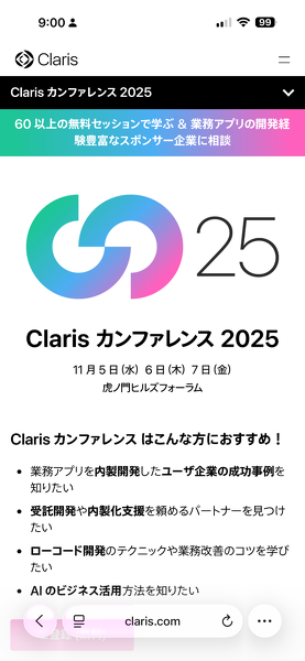 「Clarisカンファレンス」という、今一番使っているソフトウェアの展示会がある。