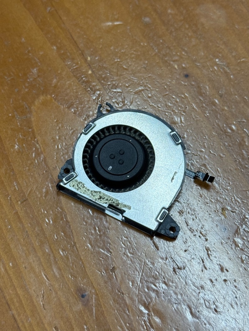 取り外した古いファンは、指で回しても、すぐに回転が止まってしまう。