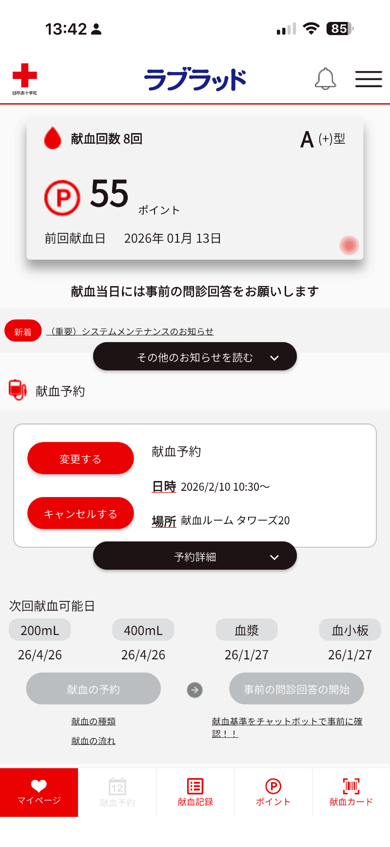 結果として、初回であることを考慮して400mLの献血。