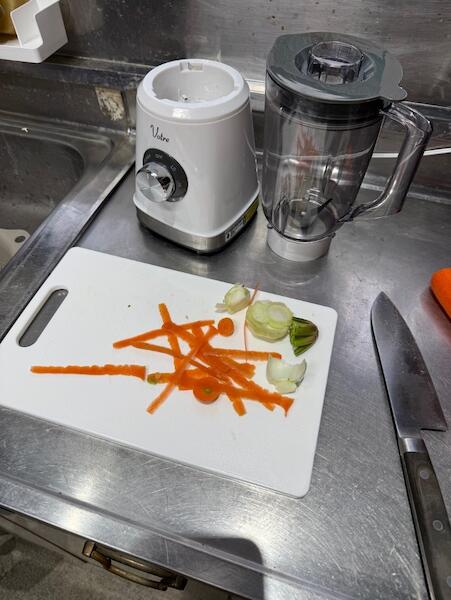 最近はカレーに限らず。味噌汁でもスープでも。割と入れられるものはミキサーにかけて、ホットクックに流し込んでしまう。